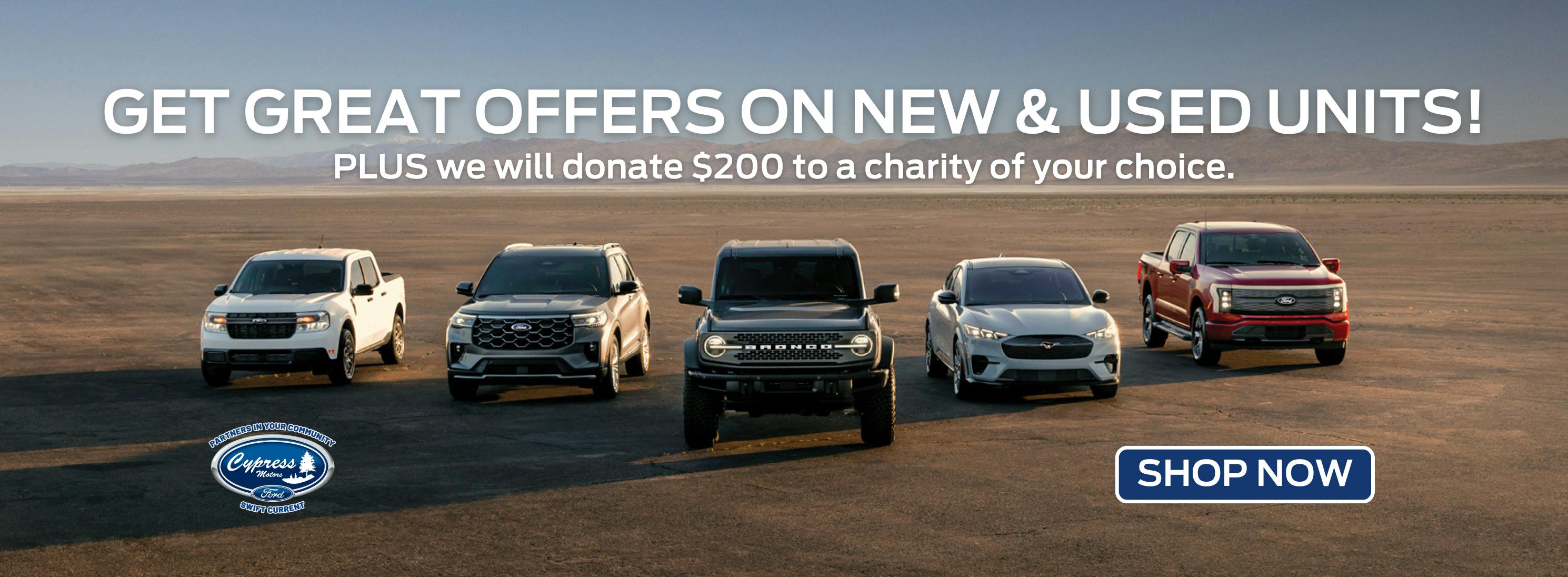 For each purchase of any new or used vehicle, Cypress Motors is giving back to our Swift Current community by donating $200 to a local charity of your choice. Additionally, $1 from every Quick Lane oil change is donated to a different local charity each month.